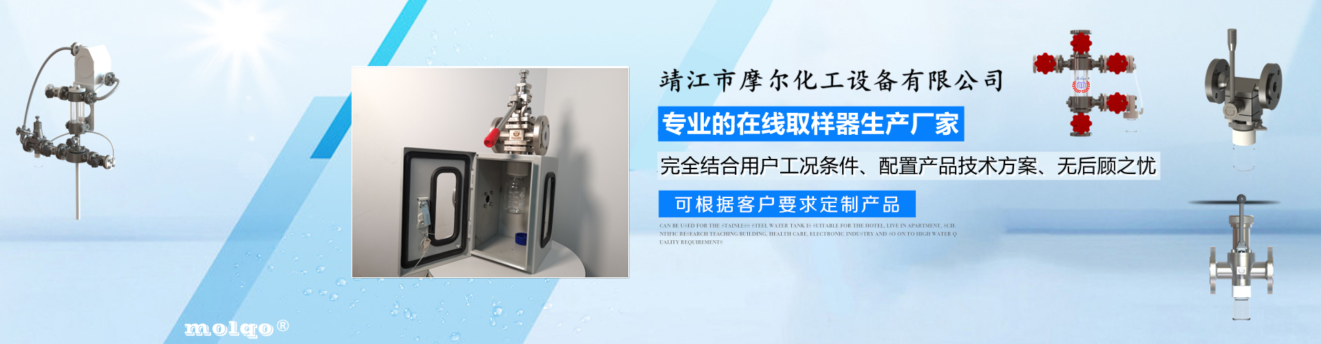 靖江市摩爾化工設(shè)備有限公司位于蘇中明珠——江蘇省靖江市城南工業(yè)園區(qū)東進(jìn)路北側(cè)天元艾爾瑞內(nèi),另有生產(chǎn)基地位于靖江市經(jīng)濟(jì)技術(shù)開發(fā)區(qū)新號(hào)路1號(hào)鼎電科技園內(nèi)。我公司由數(shù)名長(zhǎng)期從事化工生產(chǎn)、氟塑襯里模具開發(fā)以及機(jī)械自控設(shè)備的專業(yè)人員共同合作成立,致力于提供客戶最優(yōu)的高效在線取樣、反應(yīng)及精餾分離設(shè)備,為客戶提供合理的設(shè)備選型方案,以幫助客戶提高綜合生產(chǎn)效率以及改善生產(chǎn)現(xiàn)場(chǎng)環(huán)境為目標(biāo)。 本公司主要制造及銷售的產(chǎn)品有:釜用在線取樣裝置,管道取樣閥,釜用清洗噴淋裝置、搪玻璃設(shè)備、GMP專用搪玻璃設(shè)備、氟塑襯里設(shè)備、攪拌器、釜用機(jī)械密封、氣動(dòng)閥門及搪玻璃管道、襯氟閥門管道、非標(biāo)不銹鋼容器,精餾塔塔器、片式冷凝器及PTFE密封件、鋯、鈦、鉭、鎳等加工件制品。我司是一家集研發(fā)銷售、設(shè)計(jì)咨詢服務(wù)于一體的專業(yè)···